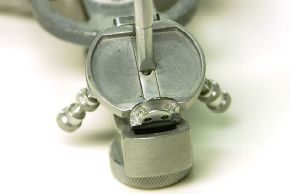 Close-up of mechanical incisal guide table. Included is the pin for long centric