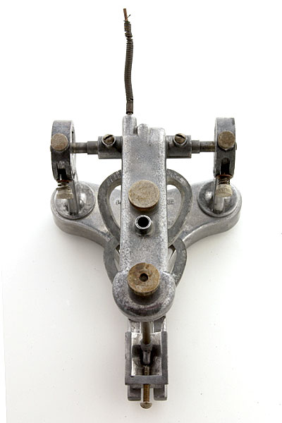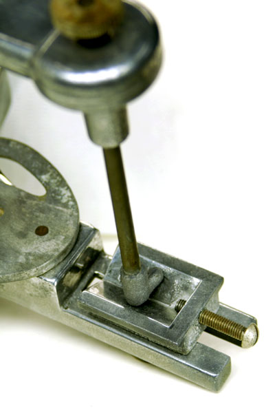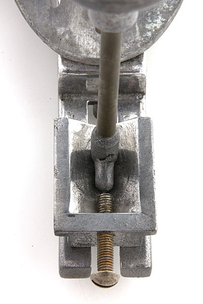 Detail of the incisal pin and guide. The horizontal cam is facing forward in contact with the “long centric” adjusting screw.