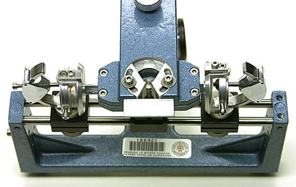 Superior view of the posterior controls. The intercondylar distance is adjustable and the Bennett angle controls are in the center of the instrument.