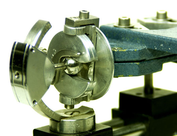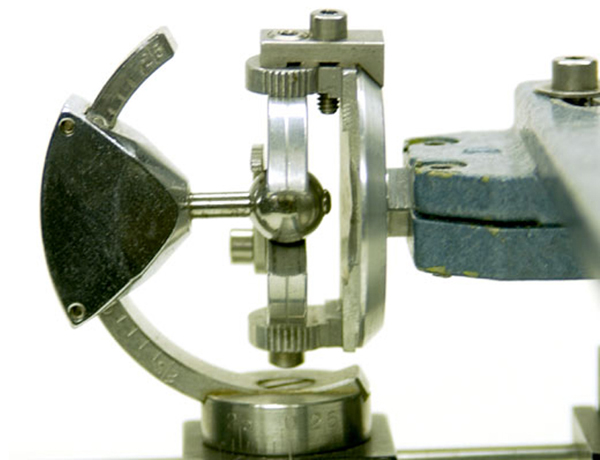 Close-up of the right condylar mechanism the semi-circular arc device controls the direction of the side shift of the working condyle.